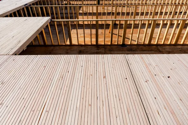 Reclaimed NLT is used in mid-rise, up to three stories, but it can also form part of larger developments. Its versatility makes it suitable for everything from single-story pavilions to multi-story buildings.